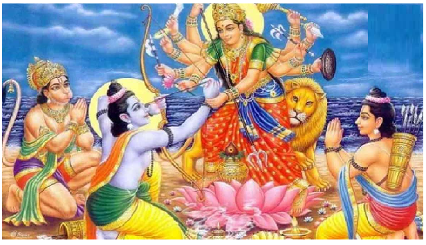 रामायण के अनुसार, भगवान श्रीराम ने रावण-वध से पूर्व अश्विन शुक्ल पक्ष की नवरात्र में देवी दुर्गा की आराधना की थी! उनकी भक्ति से माता प्रसन्न हुईं और विजय का आशीर्वाद दिया!